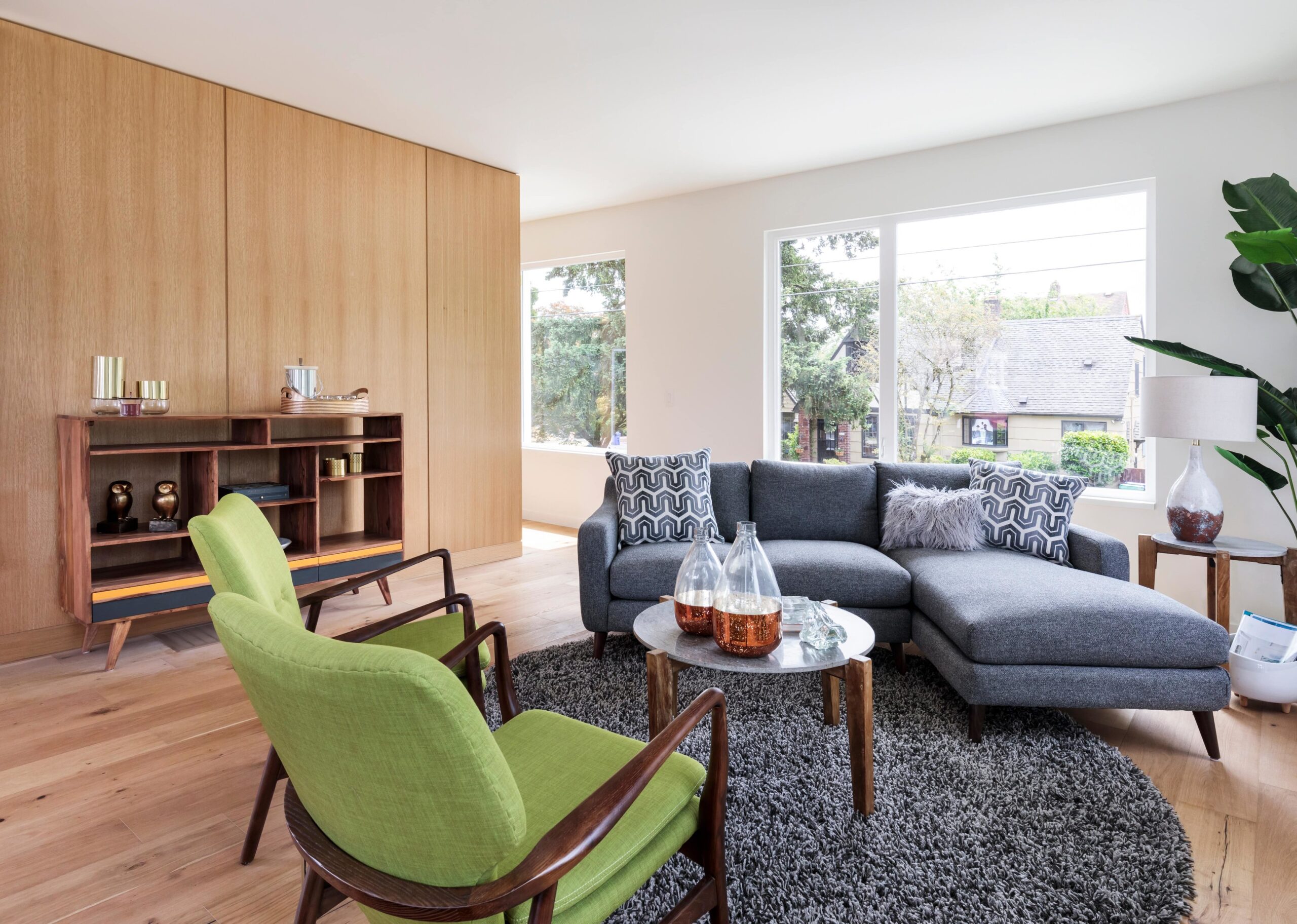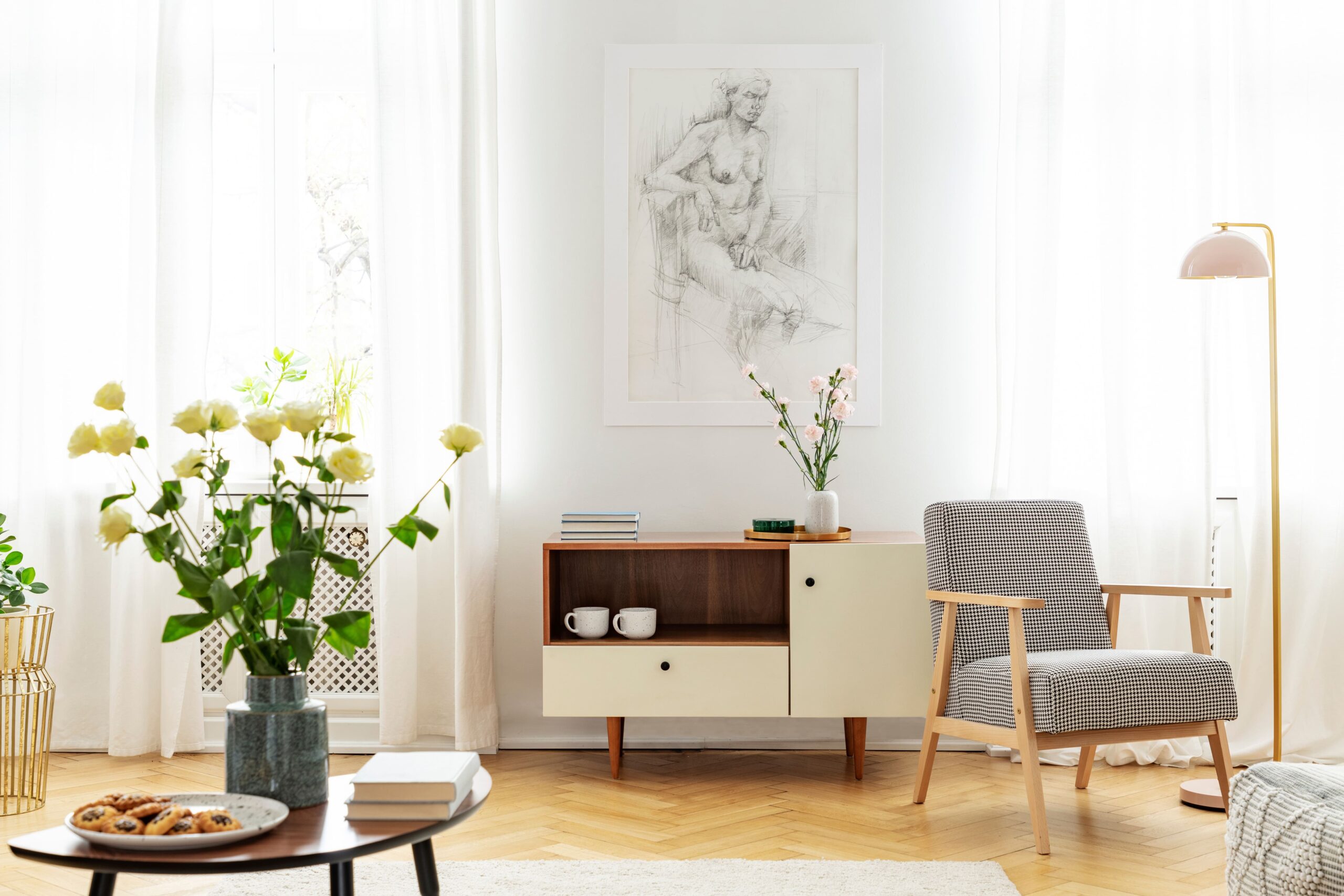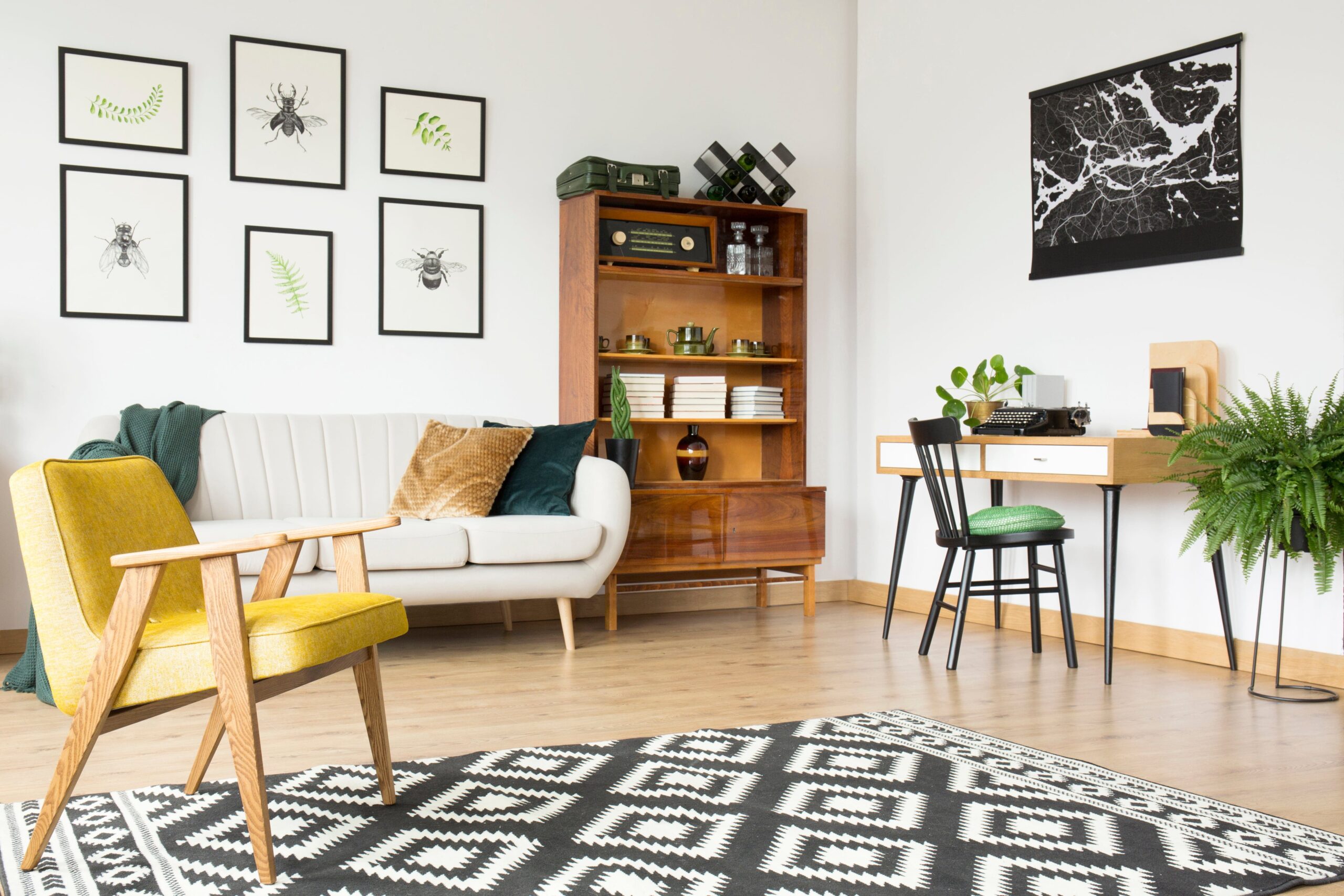 Straight line ceilings, big glass doors and wide windows where you can view your surroundings clearly are some of the main features of a Mid Century Modern style. This open-plan room look allows ample sunlight into the house. A sign of a healthy and naturally bright home, you will find elements like wood, trees and water. The colours tend to be warm and natural like brown, grey, turquoise, orange, mustard, green and white. A fancy floor lamp or a classy chandelier is a style statement of a Mid Century Modern home. Rough textured woolen rugs, geometrical patterns on wallpaper or couch cushions would go well.