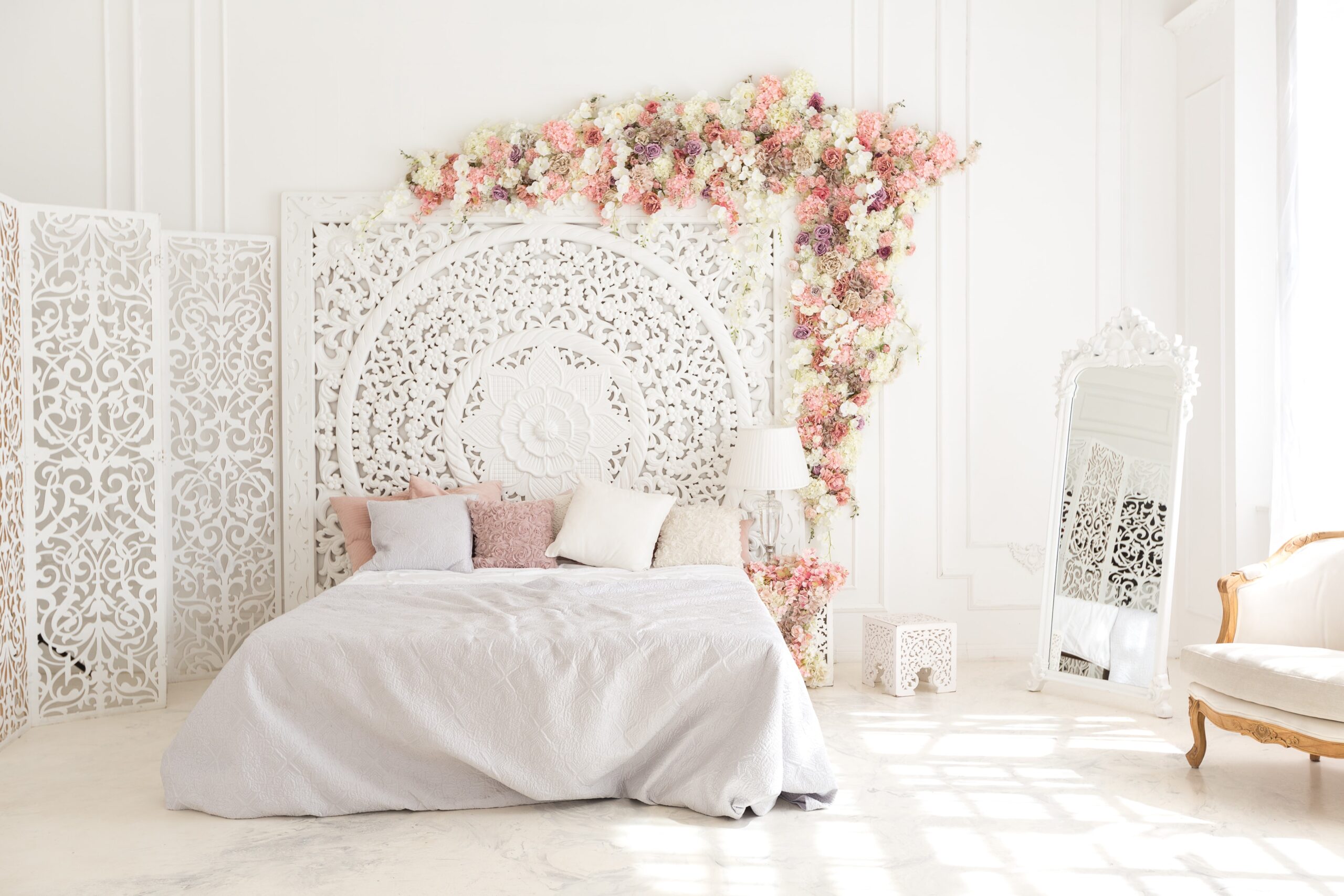 Pull up blinds are prefered more than drapes to maintain the open bare look. Choose warm lights for the evening, place a handful of beautiful antiques in the living room, don’t overcrowd. Wooden floors compliment the bare clean setting. Bedroom has to provide comfort and be functional at the same time. Besides your bed, two side tables, a huge mirror, a chair next your wardrobe should be sufficient.