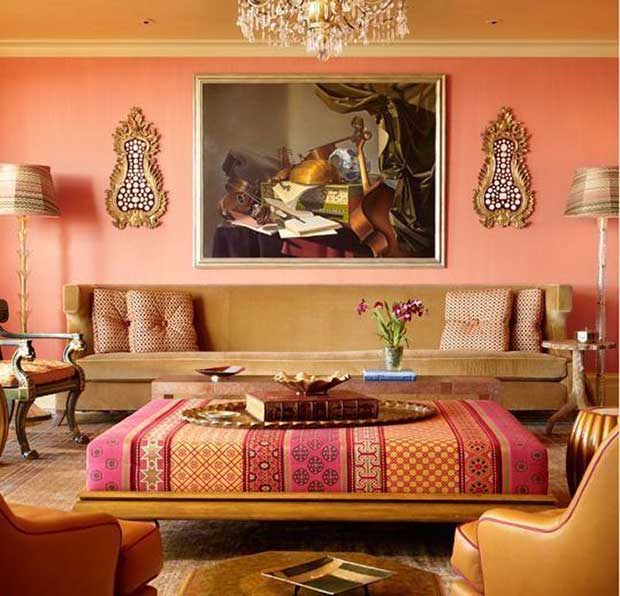 Handmade tapestry, brass artefacts, and beautifully carved wooden furniture and antique damachiyas decorate the ethnic homes. Magnificently carved wooden jhoolas (Indian swings), four poster beds and gorgeous storage trunks created by some of the finest artisans. Intricate yet functional, this design is a signature style in rural regions. Hand woven fabrics, rugs and cushion covers in pop of bright colours like pink, rich brown, peacock blue, greens, burnt oranges and yellows. Earthy tones that are rich and majestic, with gold borders are a classic choice if Indians. Warli painting (traditional tribal art) on walls is quite popular in Maharashtra.