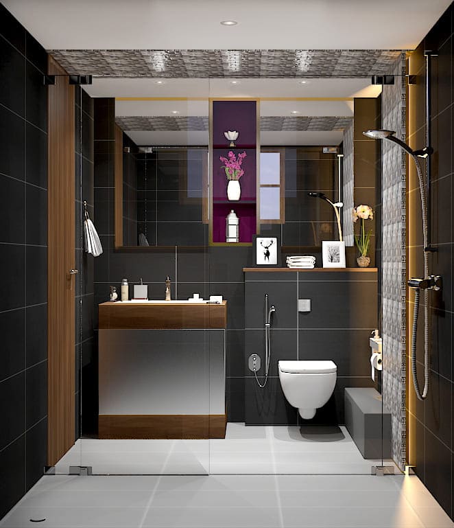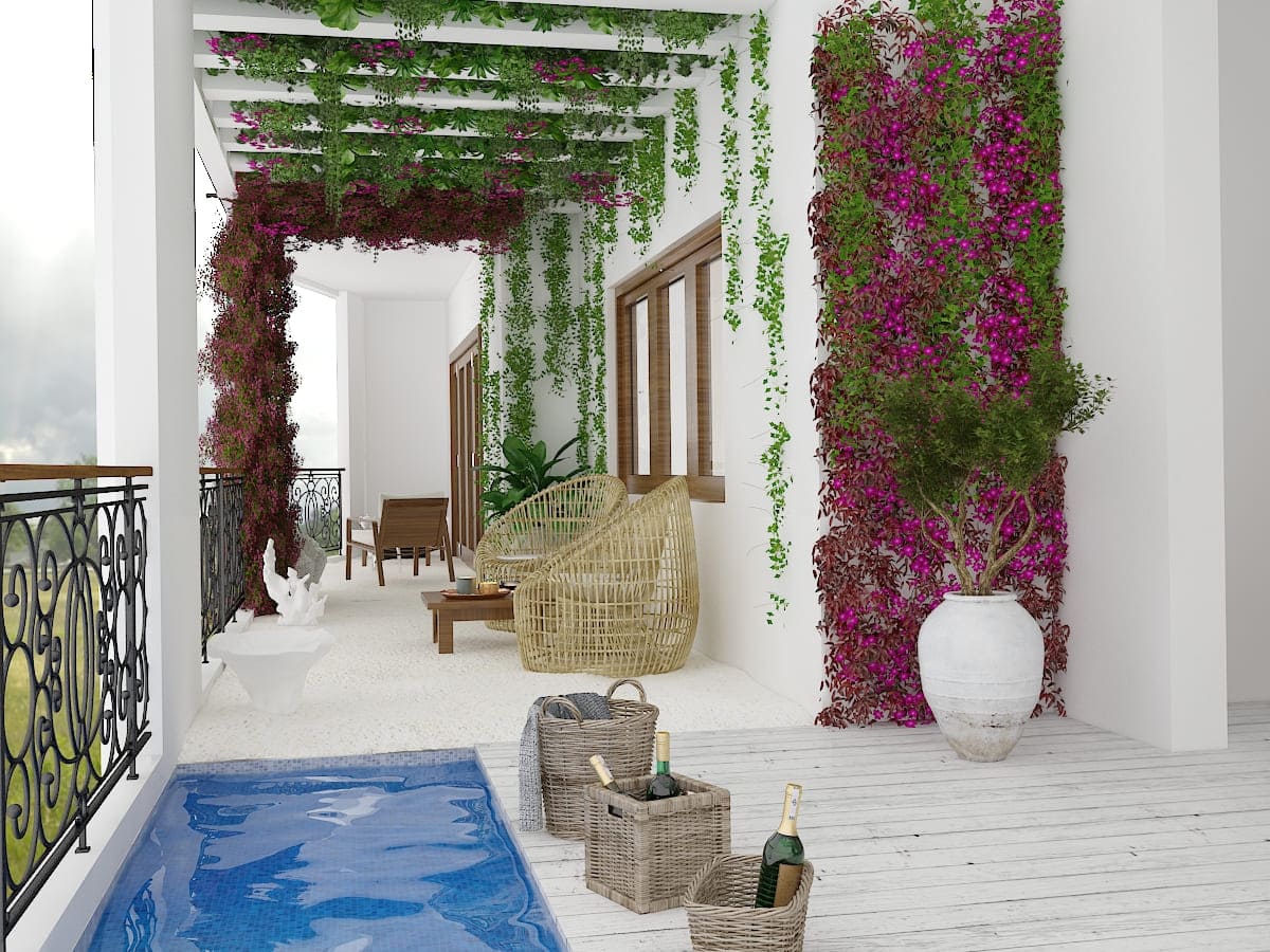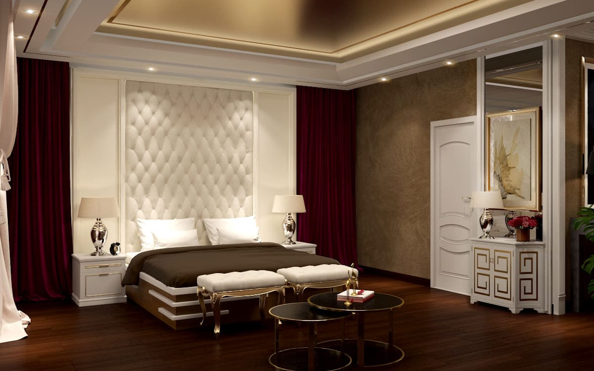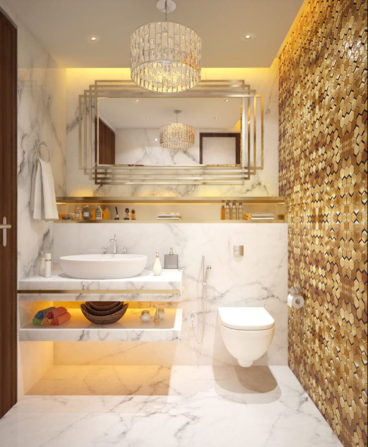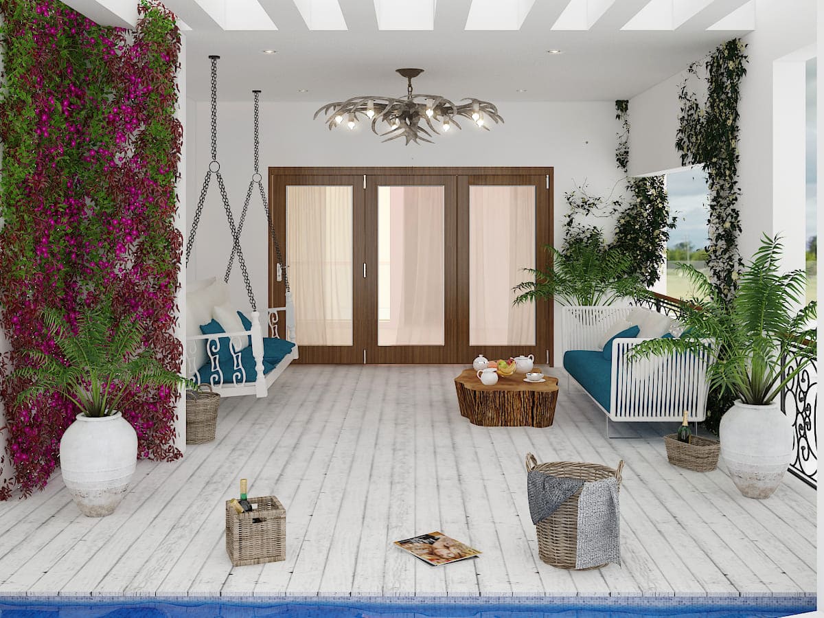 Feast your eyes on this grand casa! A marriage between luxury and glamour, DesignReify transformed the entire house into a dreamland. Every room has a different colour theme, each and every furniture piece or artefact chosen is dripping with a unique aura! We used a lot of gold tones, a dreamy green balcony and Chandeliers everywhere, even in bathrooms. Instagram-friendly porch, where nature meets style, antler inspired chandelier, tree log table and beautiful creepers. Lavish bar room to chill with high bar stools, long counter and rustic wood beams for the ceiling. We enjoyed designing every inch if this star-studded duplex penthouse, one of our best projects ever!